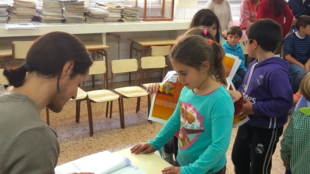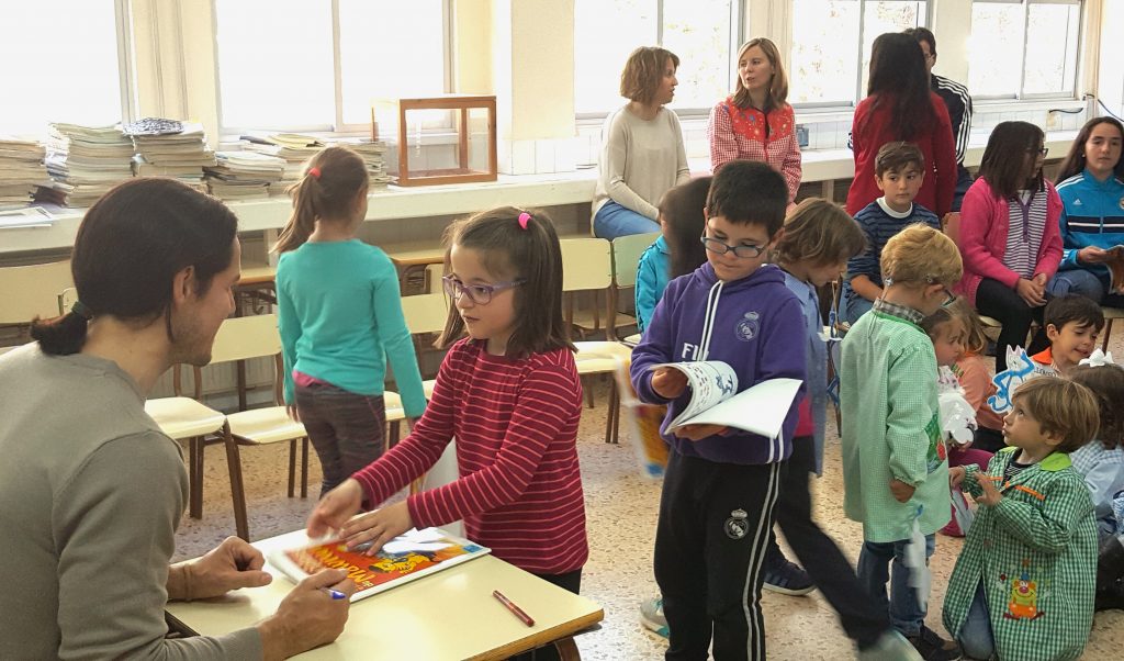 Después se celebró la charla con todos los alumnos y alumnas del centro, desde los más chiquitines hasta los más grandes. Obviamente, los escolares de los cursos superiores fueron los que más preguntas hicieron. Como en los colegios anteriores, le consultaron sobre una posible segunda parte de Mawiwi. «Me lo voy a tener que pensar ante tanta presión, jejeje», comentó Luis riéndose.