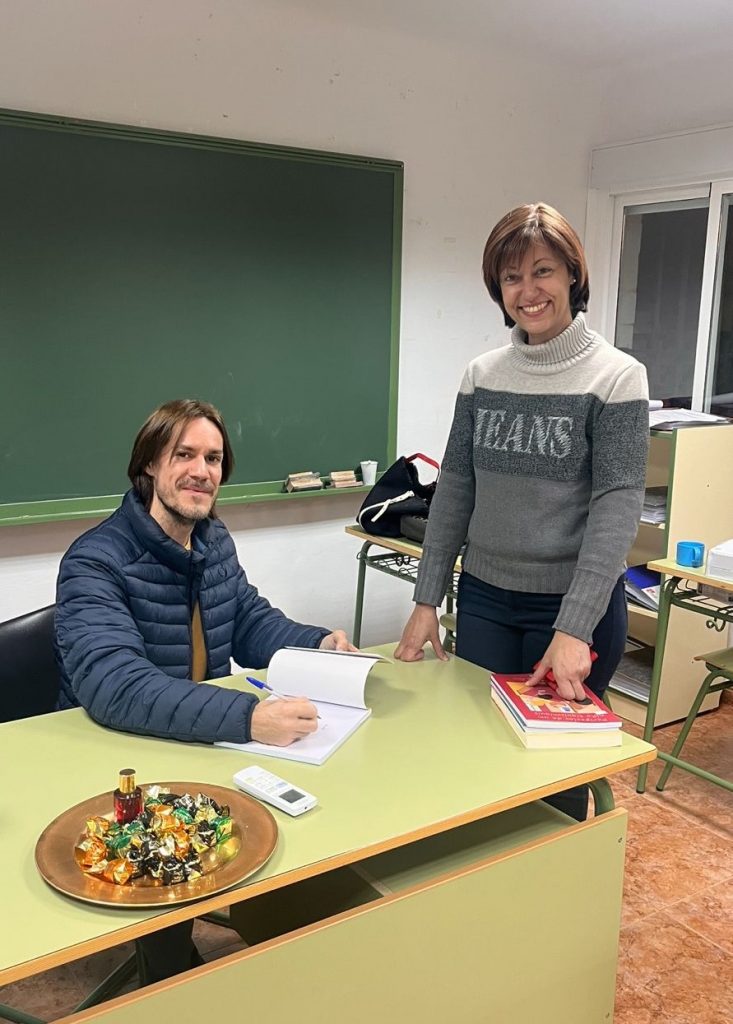 «Solo puedo decir que estoy agradecidísimo a María Luisa Díaz, no solo por promocionarme en otras localidades, sino por ofrecerme tamaña oportunidad. Conversar con los lectores y descubrir lo mucho que han disfrutado con uno de mis cuentos me llena de orgullo y satisfacción (como diría el rey emérito). Me sentí como en casa, y todo en un ambiente distendido, agradable y con mucho humor», declaró el autor al final. «Quiero dar las gracias a todos/as los/as alumnos/as de la AEPA, y también a mi madre, Juana de la Torre, que se prestó a llevarme, colaborando así con mis campañas solidarias».
