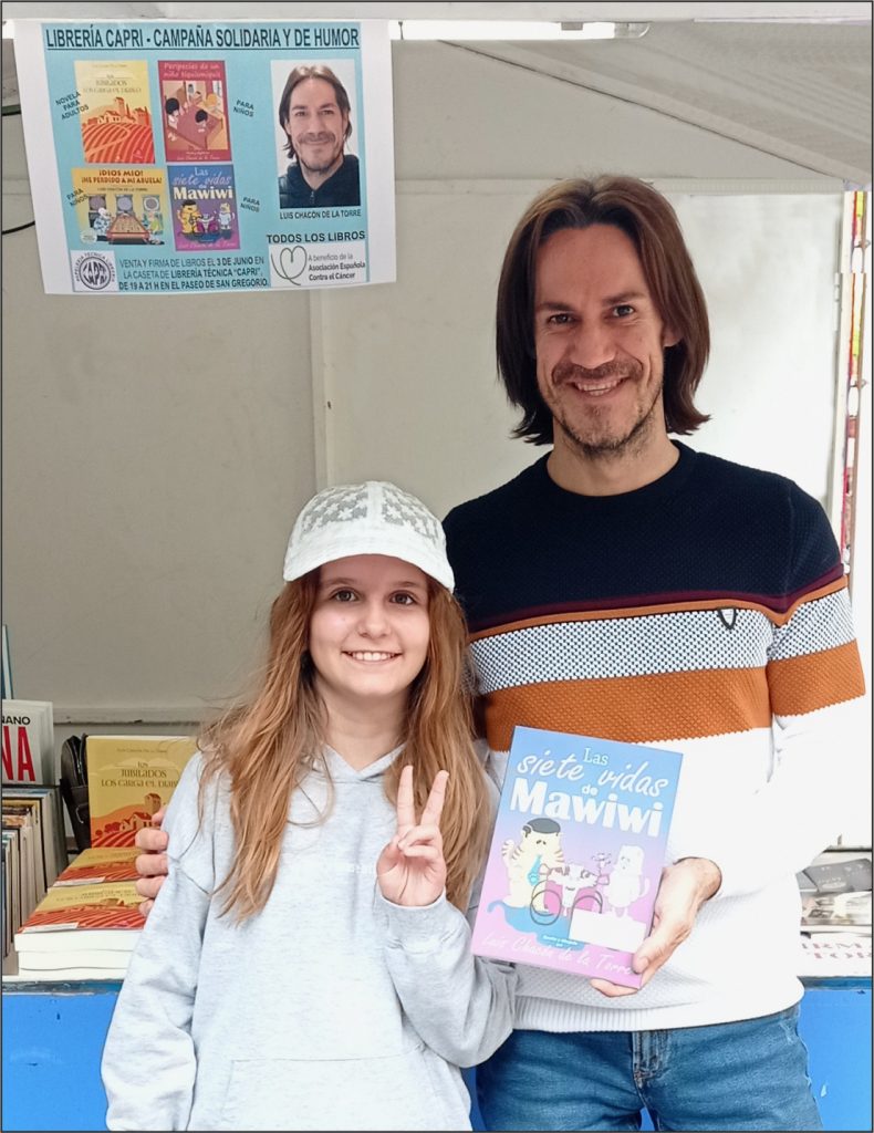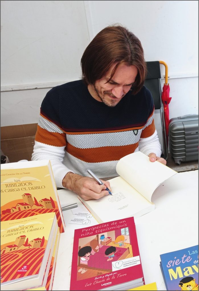 Pasado 3 de junio en la Feria del Libro de Puertollano, en el stand de la Librería Capri, vendiendo y firmando «Los jubilados los carga el diablo», «Las siete vidas de Mawiwi», «Dios mío he perdido a mi abuela» y «Peripecias de un niño tiquismiquis». Es decir, todo lo que ha publicado Luis Chacón hasta el momento. Una espuerta llena de libros, vamos.