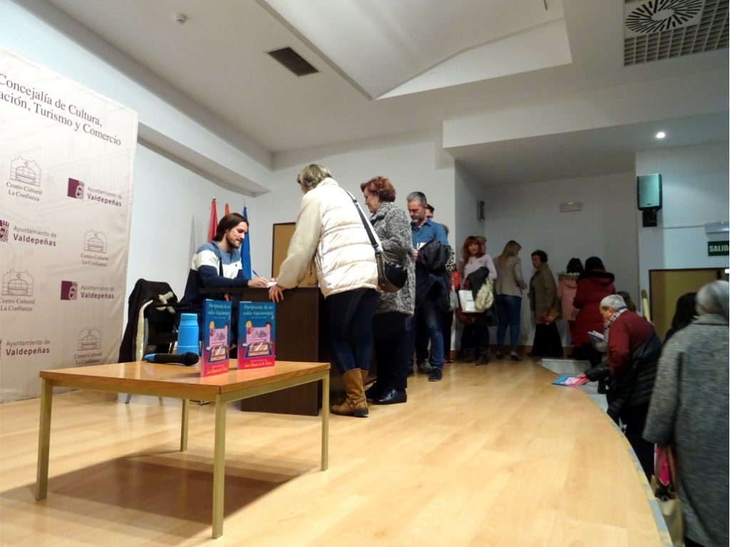 «Solo puedo expresar mi agradecimiento a todas las personas que me han ayudado en este periplo, porque todas ellas han puesto su granito para que saliera perfecto. Gracias al Ayto de Valdepeñas, por cedernos “La Confianza”, y a Vanessa Irla, por su elegante intervención. A Elena Garrido, por su labor profesional y por ser mi enlace con “Proyecto Sueños”. A Pilar Romero, a la que siempre “lío” en mis presentaciones (qué facilona es, pero qué bien lo hace la “jodía”). A Carmen Maroto, mi mujer, por grabar el evento y por hacer de “cajera”. A mi amiga Mariví de la Hoz, por hacer mil “foticos” de recuerdo. A la prensa local, por cubrir el acto y dar publicidad a mi libro. A las librerías colaboradoras (TBO, HiperOffice, Nobel, Ibrahím, Real y Castellanos). Y como no, a todo el público asistente, por el esfuerzo de ir, porque sin su presencia no hubiera tenido sentido. Gracias a todos/as por dedicarme vuestro tiempo, de verdad. Y si me olvido de alguien, que me lo diga, porque estoy aún “acelerao” y se me pasan cosas… pero lo añadiré de buen grado, jejeje», expresó el autor para cerrar el acto.