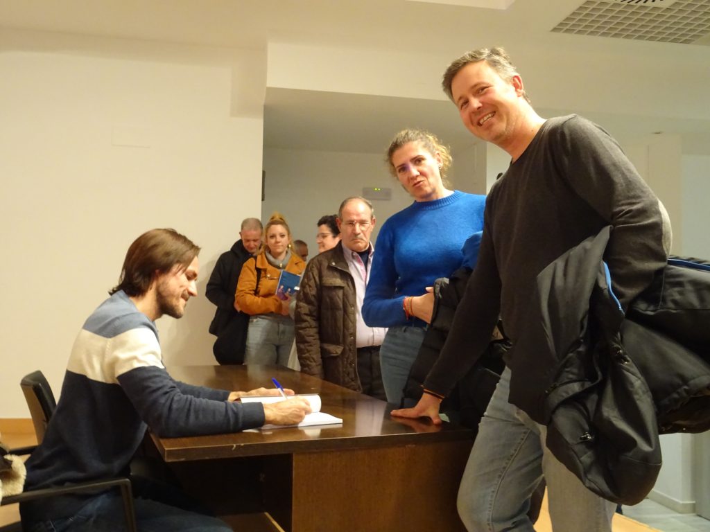El acto, que manejaron a cuatro bandas entre Vanessa Irla, Pilar Romero, Elena Garrido, y el escritor, tuvo raticos de guasa, y otros… de chanza, es decir, que no hubo momentos serios, y este buen rollo se trasladó a los espectadores, donde la risa fue la principal protagonista.