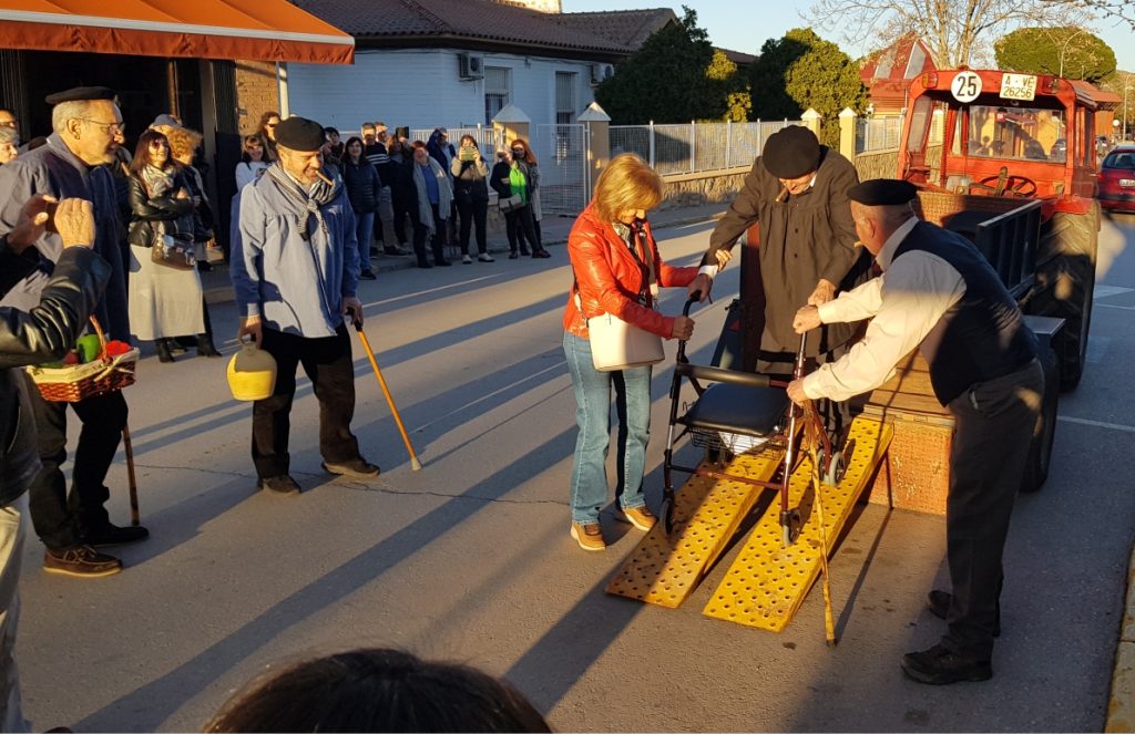 Para gozo de todos los que estábamos allí hicieron una representación única e inolvidable. Se metieron totalmente en el papel de los personajes, hablando en manchego «cerrao», voceando, metiéndose los unos con los otros… vamos, lo mismo que en el libro. Se quedó ojiplático el autor valdepeñero viendo tan conseguida actuación. La entrada en tractor la hicieron en el remolque, incluso con una rampilla para que bajara Chumaquer con su andador, tal y como describe Chacón en su obra. Le dejaron sin palabras.