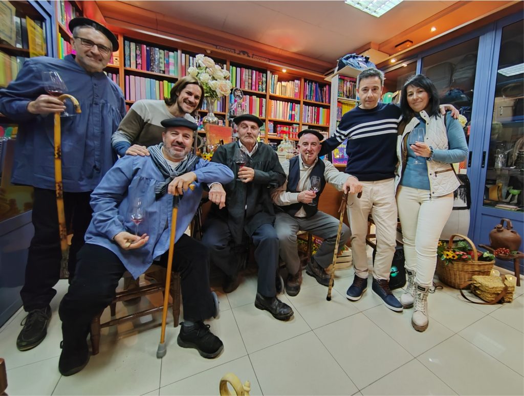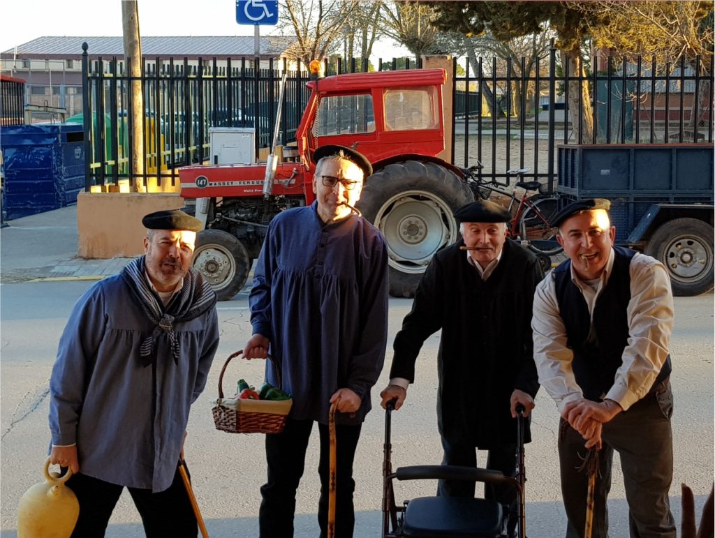 El pasado 17 de febrero, en Villanueva de los Infantes, hubo una prolongación de los carnavales… Asistía Luis Chacón a la papelería MARI para presentar «Los jubilados los carga el diablo», pero cuál fue su sorpresa al llegar al local que se encontró con los jubilados protagonistas del libro: Atranca-poco, Vuelca-carros, Chumaquer y Trompetilla. Allí estaban cuatro señores de Infantes disfrazados de gañanes, con sus boinas, sus paloduces, sus espuertas de productos de la huerta, su botijo… ¡¡y hasta el tractor rojo que conduce “Atranca” en la novela!!!