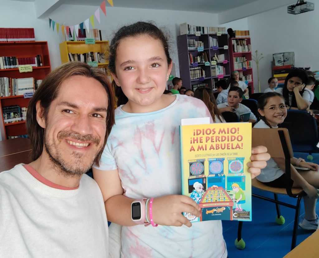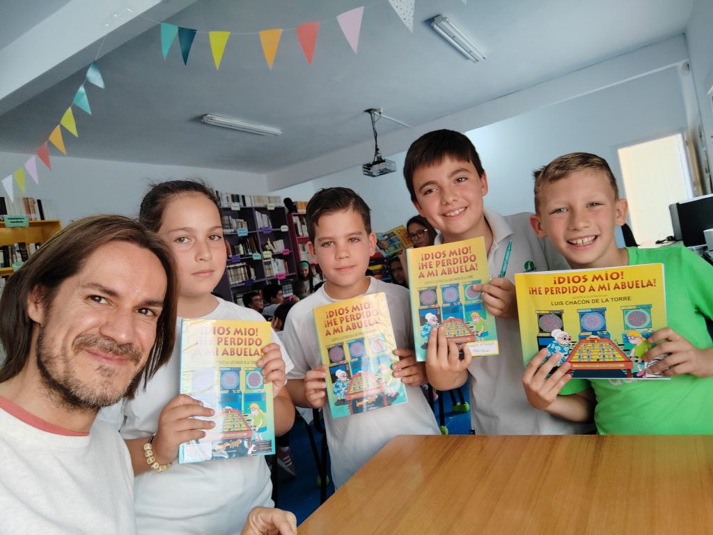 El viernes 28 de abril visitó Luis Chacón el colegio Nuestra Señora de los Dolores, de Valdepeñas (más conocidas como las Salesianas), para charlar con los alumnos de 4º de Primaria sobre el cuento «¡Dios mío he perdido a mi abuela!», el cual incluyó el centro como lectura para el curso en cuestión. Los alumnos le contaron que se lo habían pasado bomba con la lectura, no solo con la trama, sino con los protagonistas principales y secundarios, porque también daban mucho juego y eran muy divertidos (el cuento es una locura, las cosas como son, pero a los chiquetes eso les gusta mucho).
