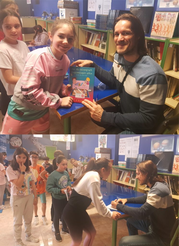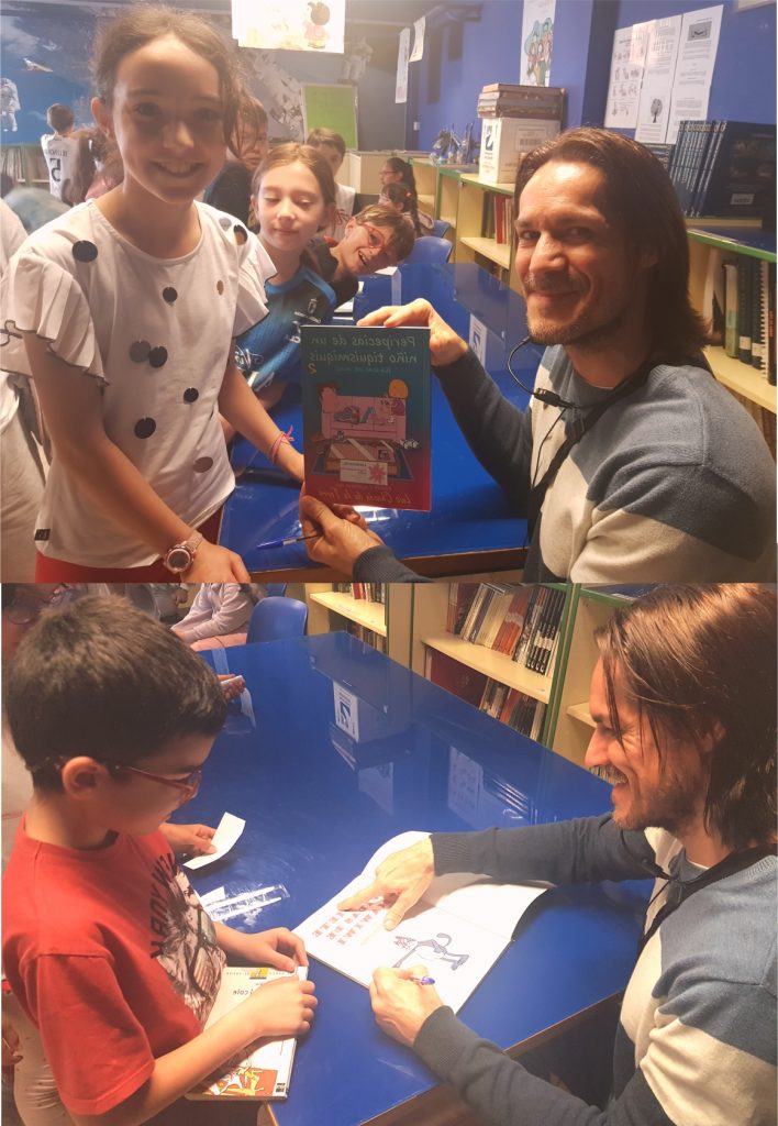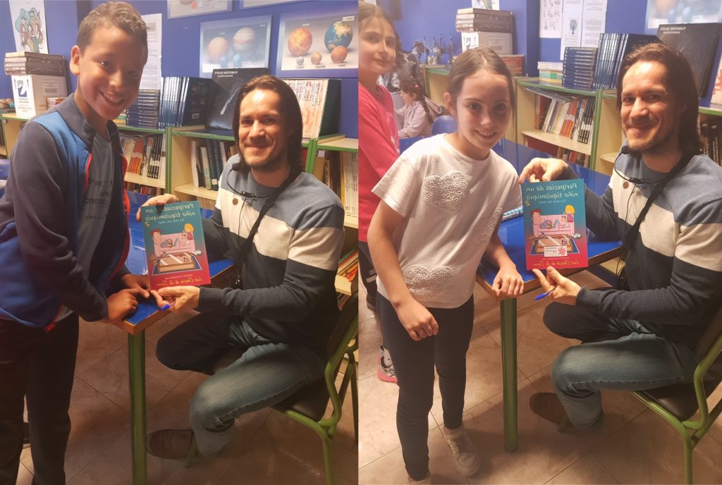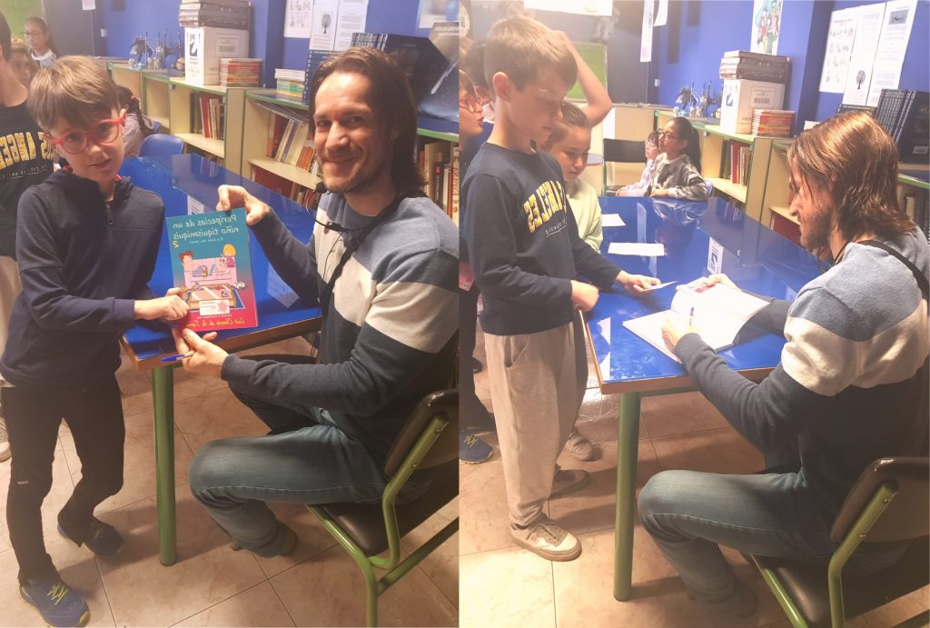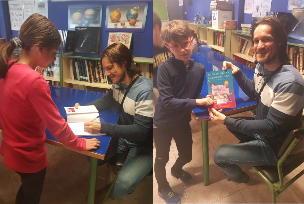 Al final chillaron “¡¡Tiquismiquis 2!!”, y luego Chacón les firmó y les dedicó los libros, y se fueron tan panchos, pero igual que el autor, porque es una visita enriquecedora para todos. No le importa “cogerse” un día de vacaciones para estas experiencias, porque merecen muchísimo la pena.